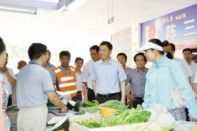图为张礼祥在汇龙农贸市场与市民亲切交谈。